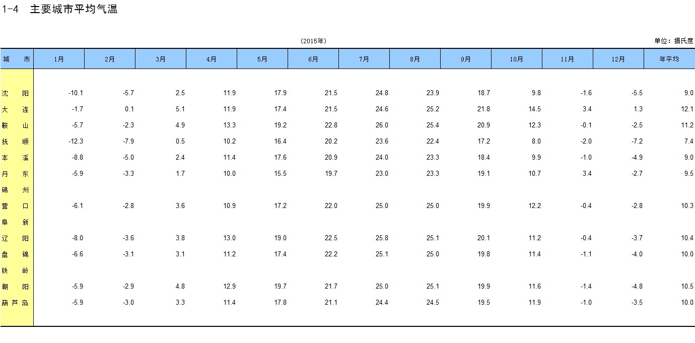 1-4 主要城市平均气温