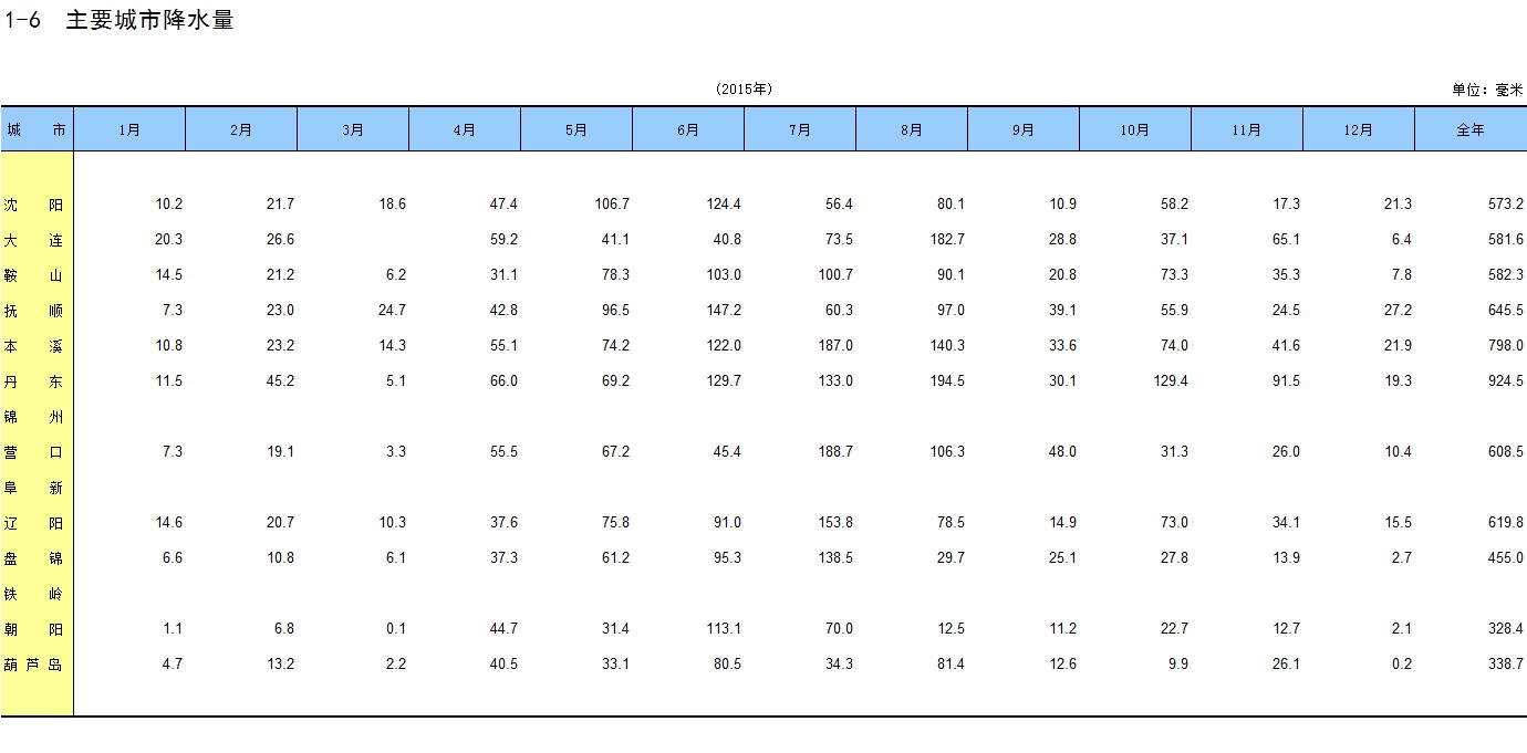 1-6 主要城市降水量