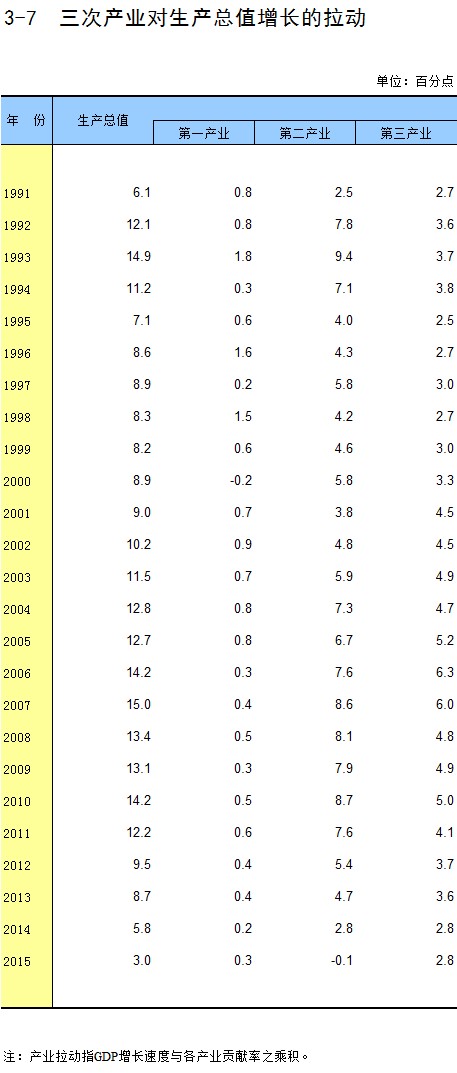 3-7 三次产业对生产总值增长的拉动