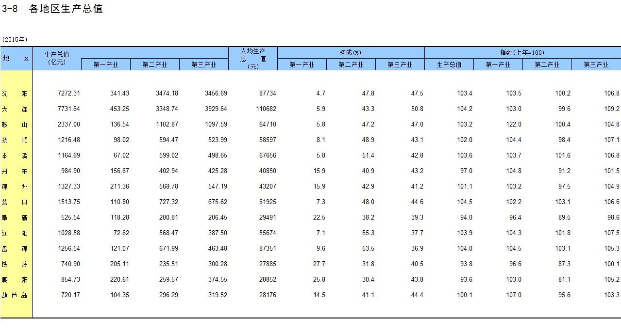3-8 各地区生产总值