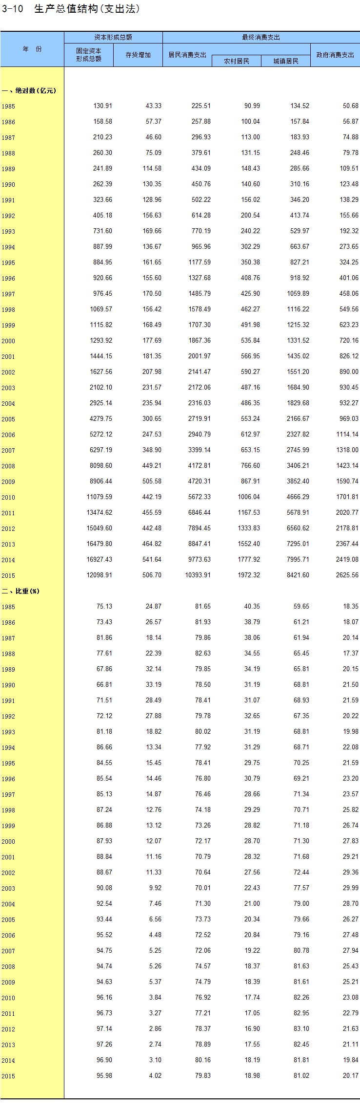 3-10 生产总值结构(支出法)