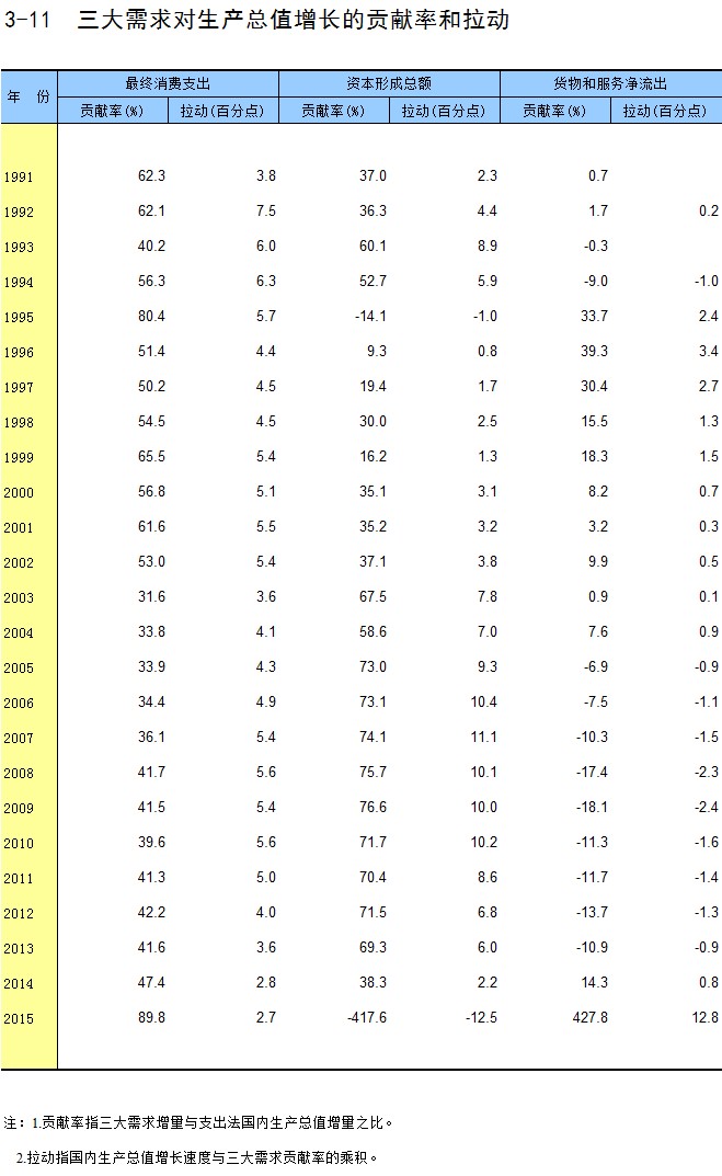 3-11 三大需求对生产总值增长的贡献率和拉动