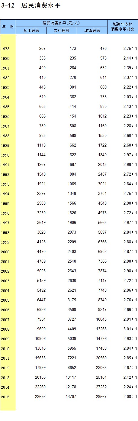 3-12 居民消费水平