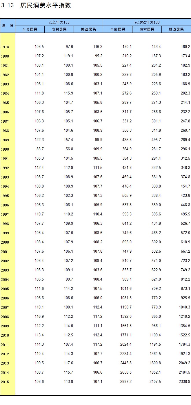 3-13 居民消费水平指数