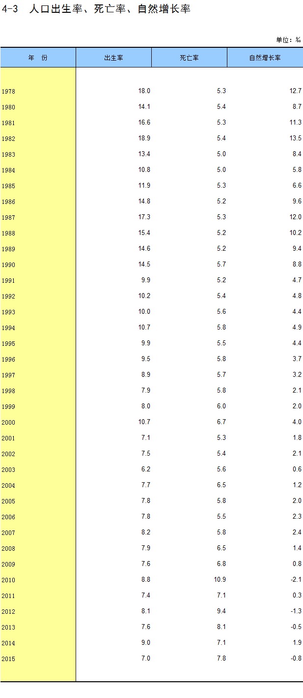 4-3 人口出生率、死亡率、自然增长率