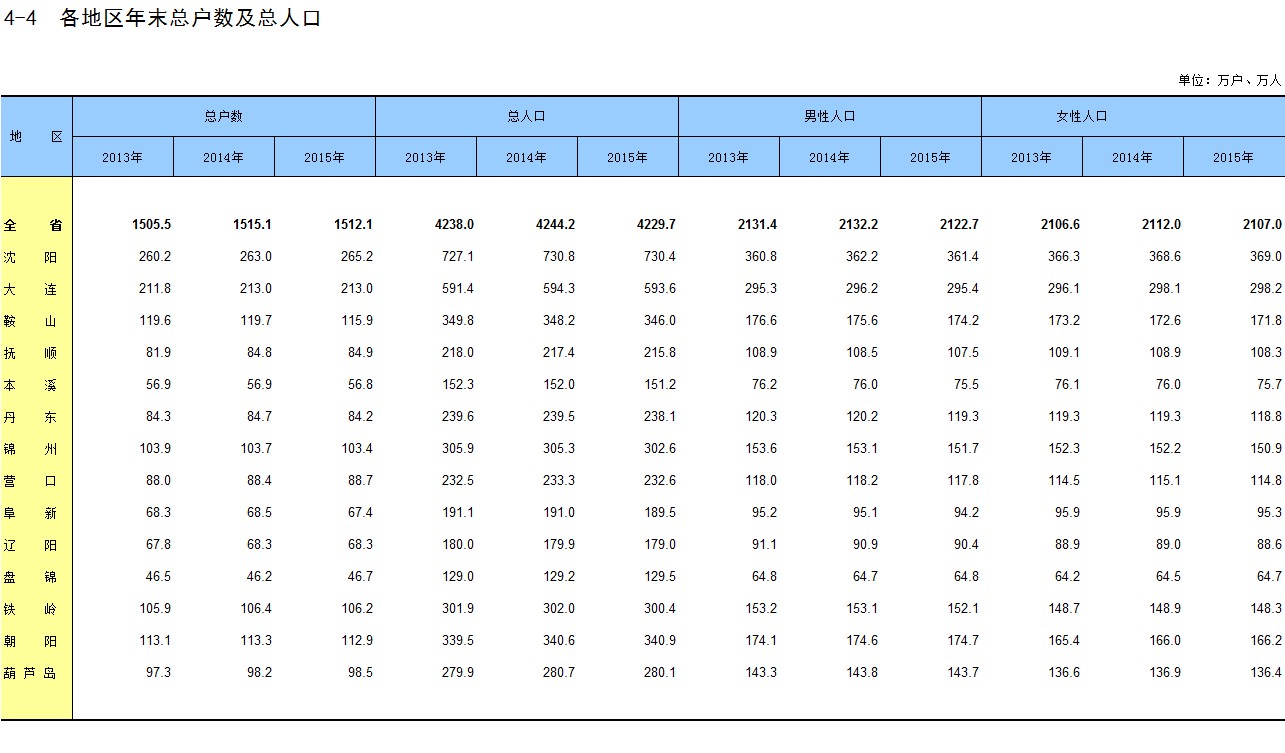4-4 各地区年末总户数及总人口