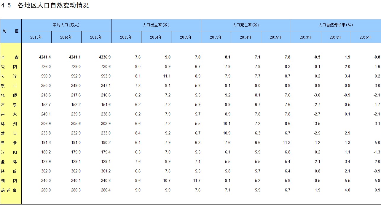 4-5 各地区人口自然变动情况