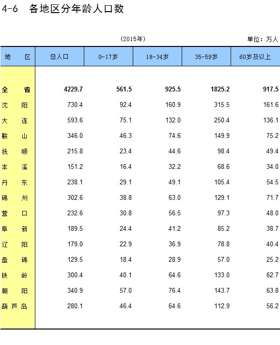4-6 各地区分年龄人口数