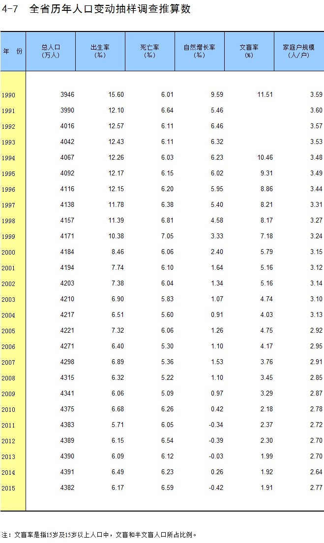 4-7 全省历年人口变动抽样调查推算数