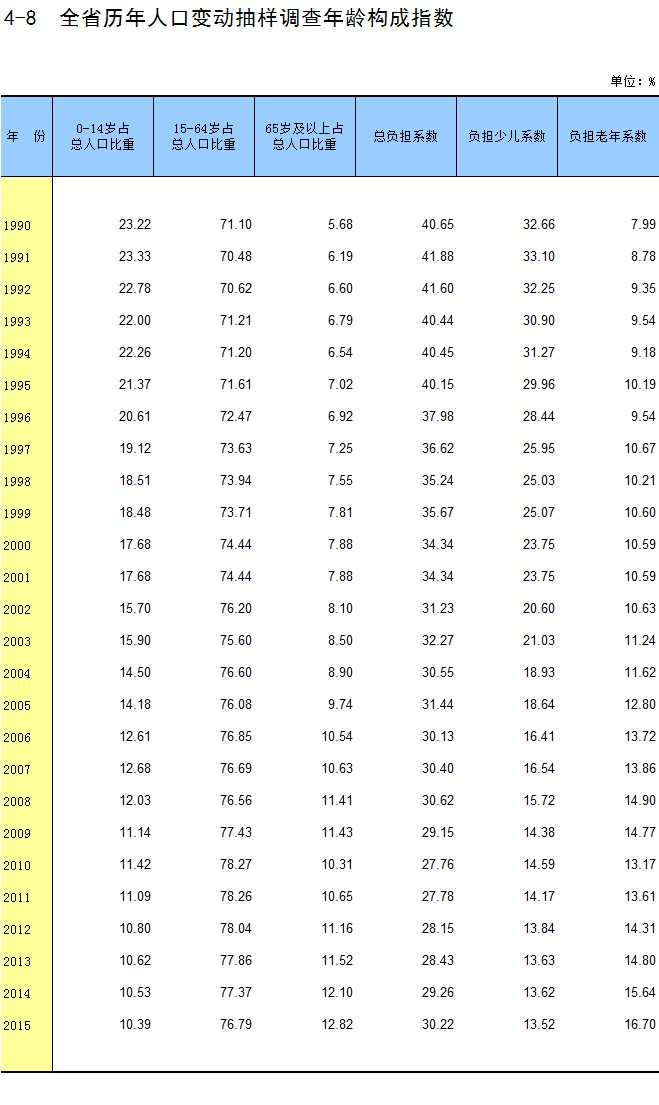 4-8 全省历年人口变动抽样调查年龄构成指数