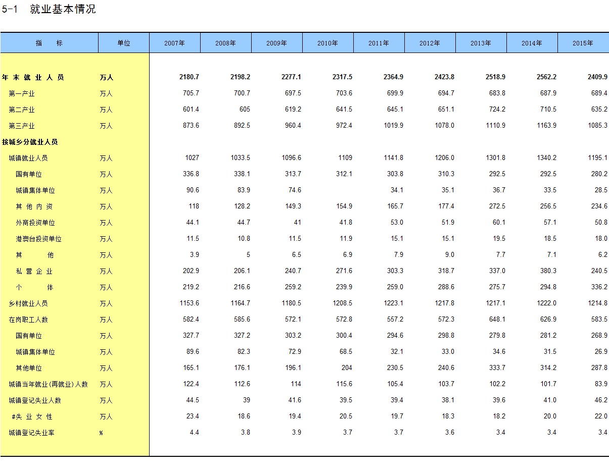 5-1 就业基本情况