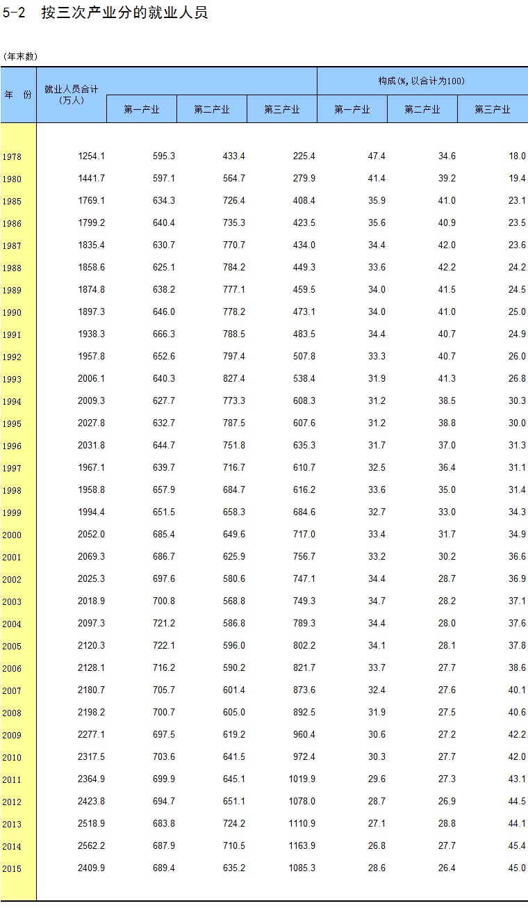5-2 按三次产业分的就业人员