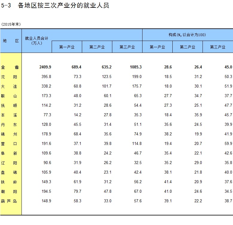 5-3 各地区按三次产业分的就业人员