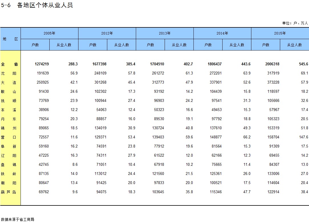 5-6 各地区个体从业人员
