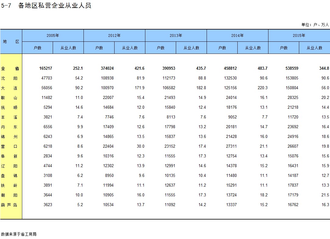 5-7 各地区私营企业从业人员