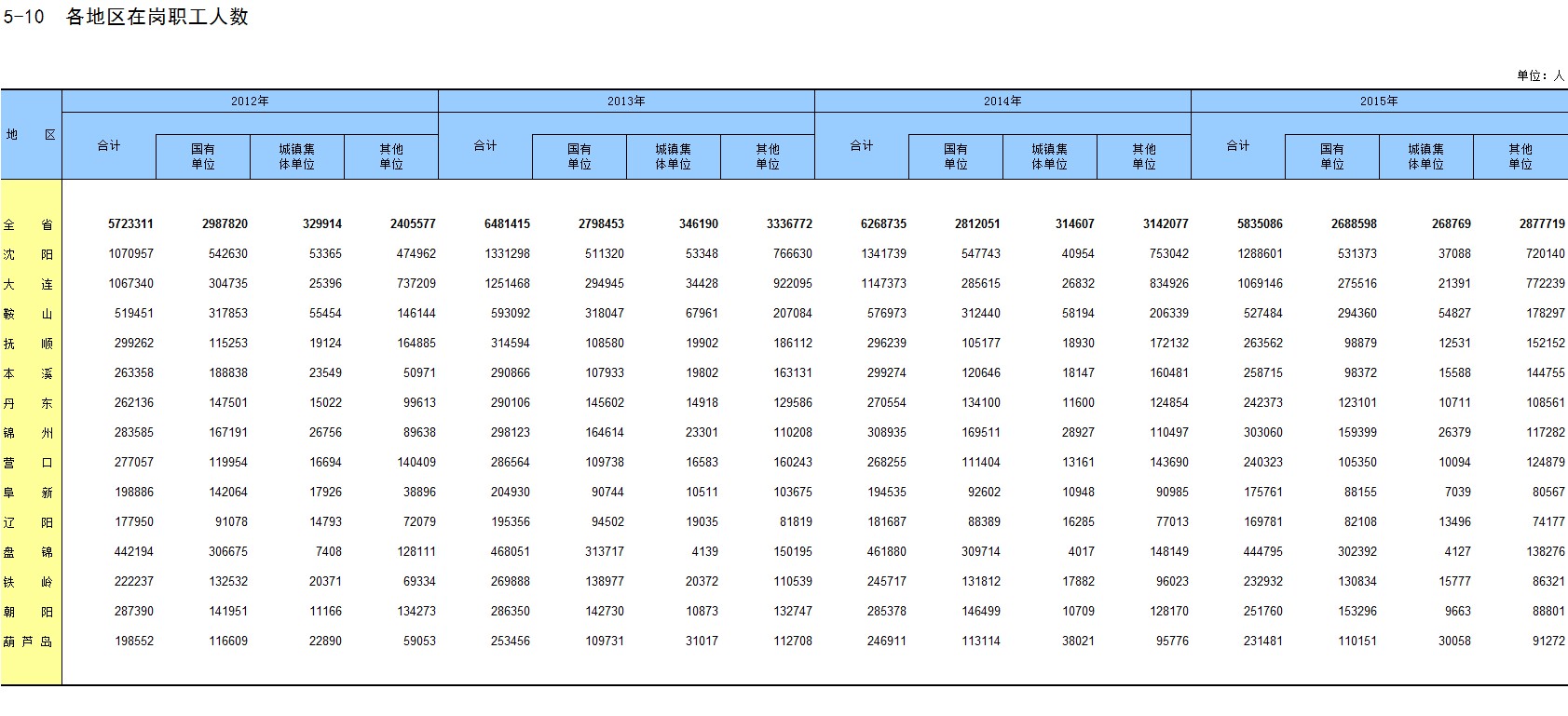 5-10 各地区在岗职工人数