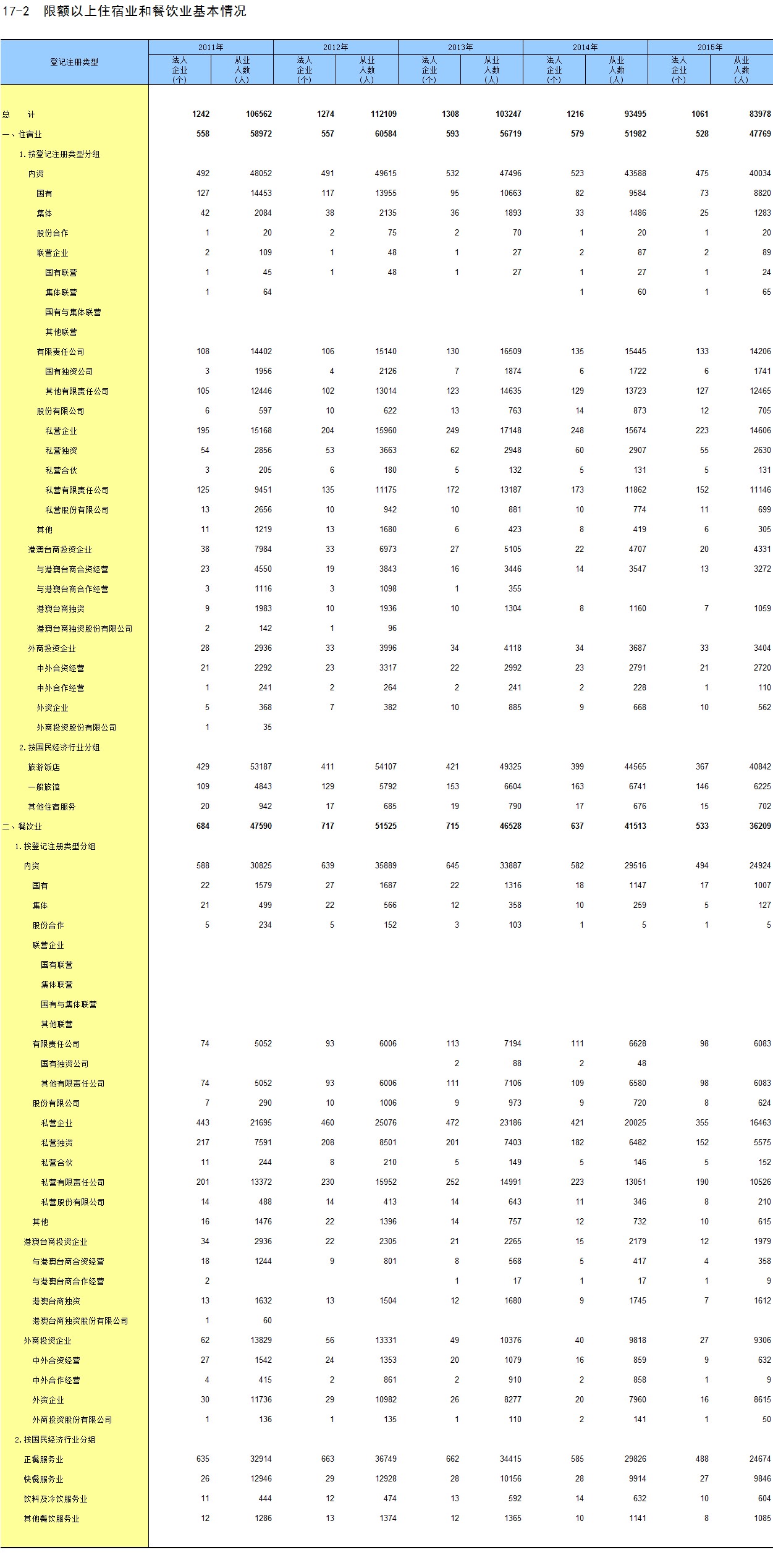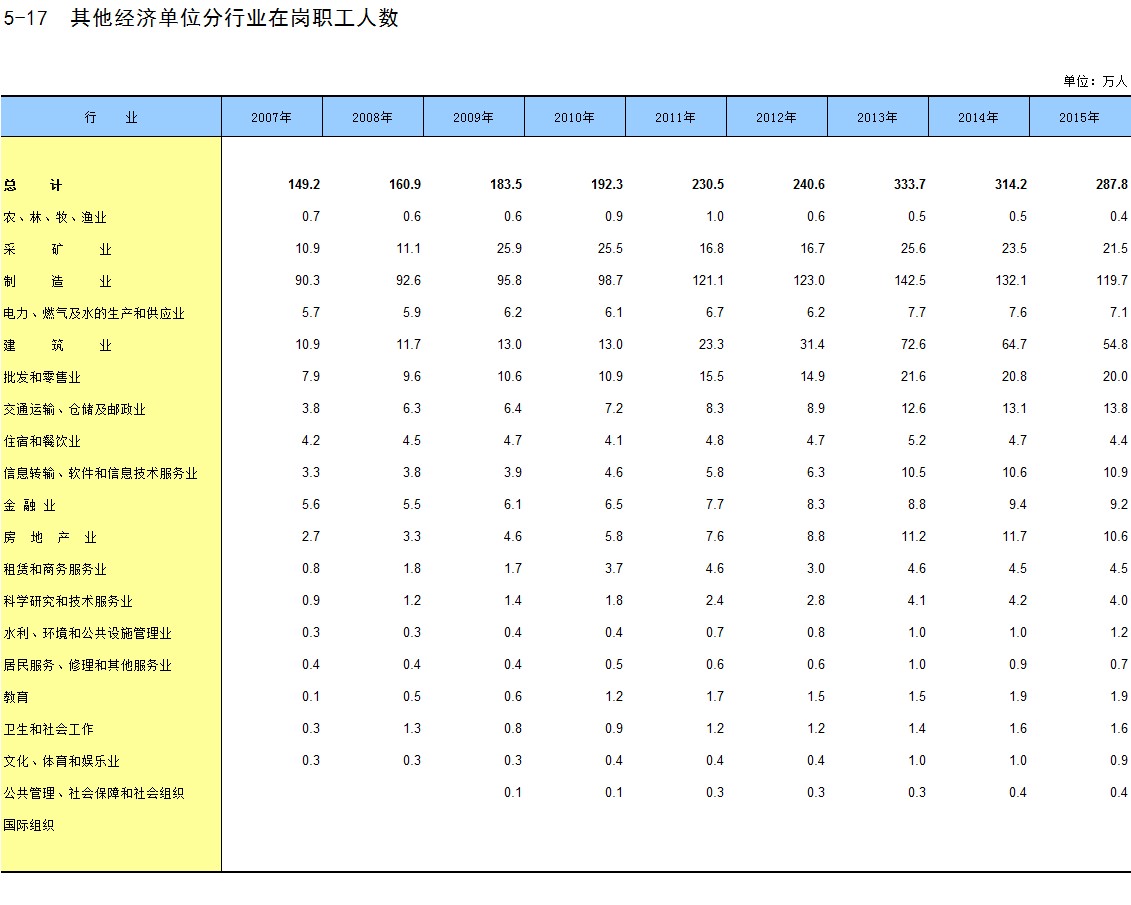 5-17 其他经济单位分行业在岗职工人数