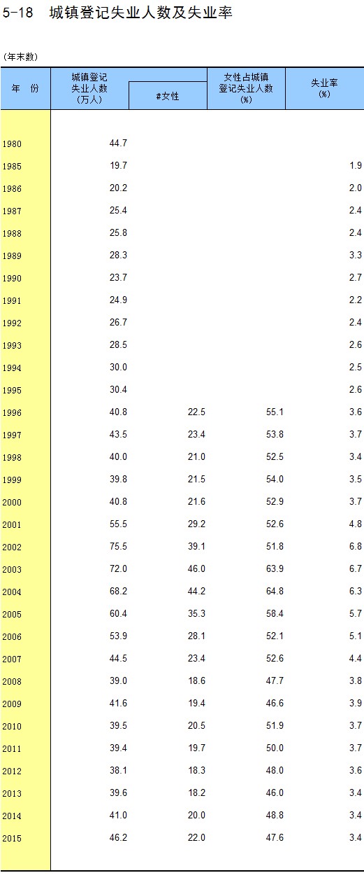 5-18 城镇登记失业人数及失业率