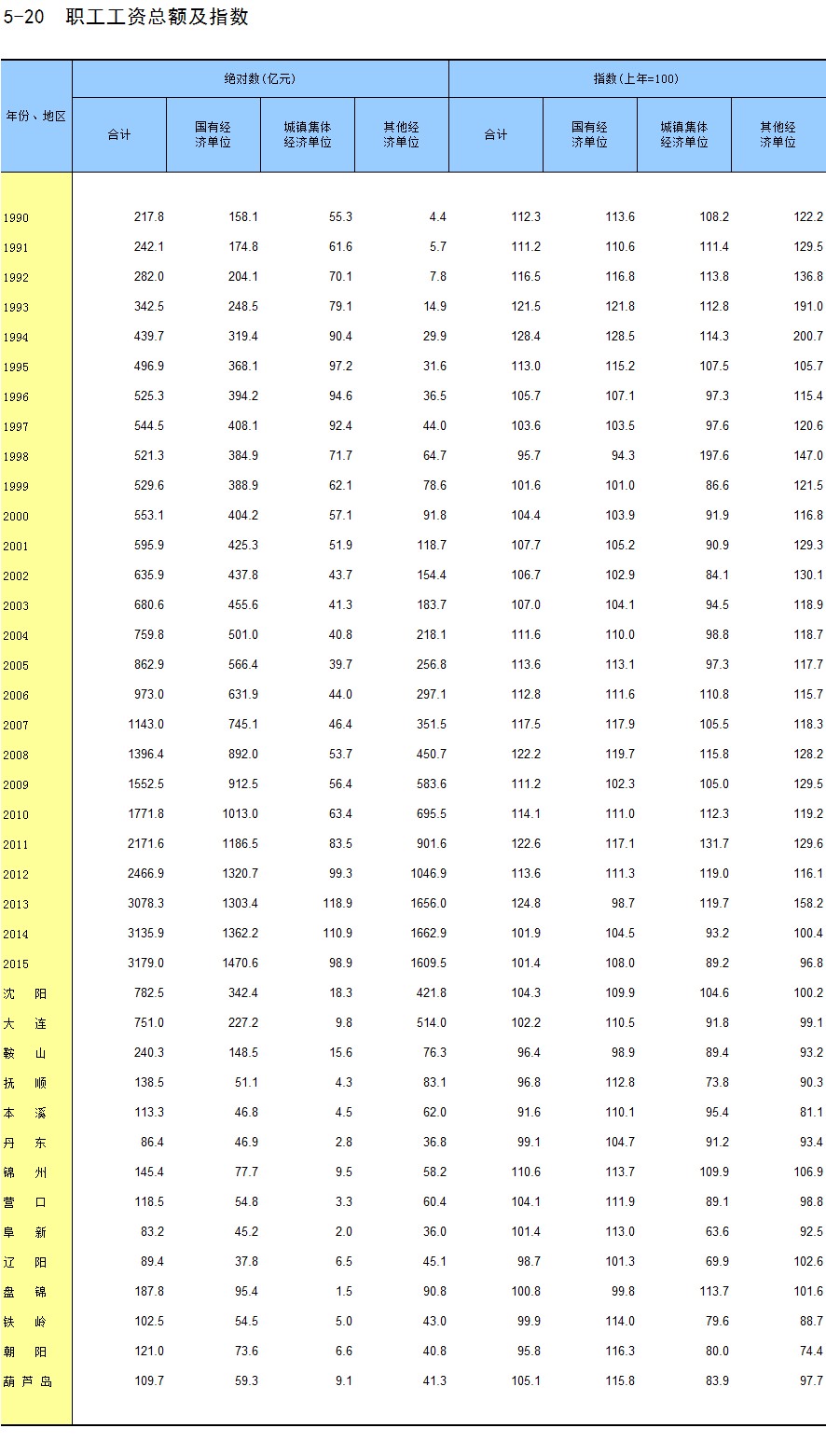 5-20 职工工资总额及指数