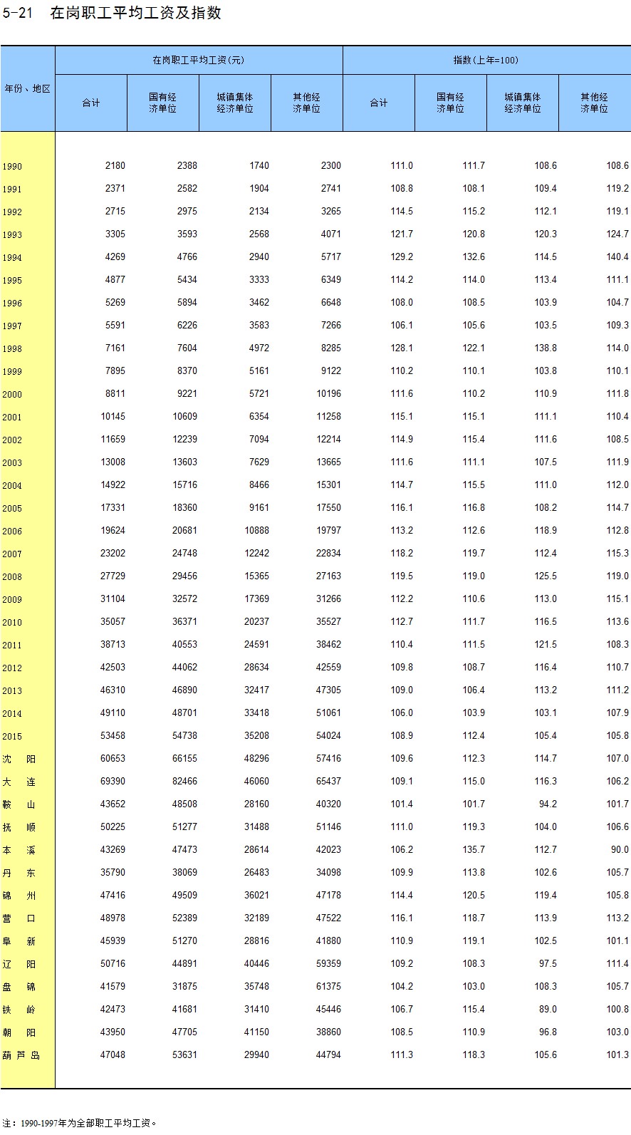 5-21 在岗职工平均工资及指数
