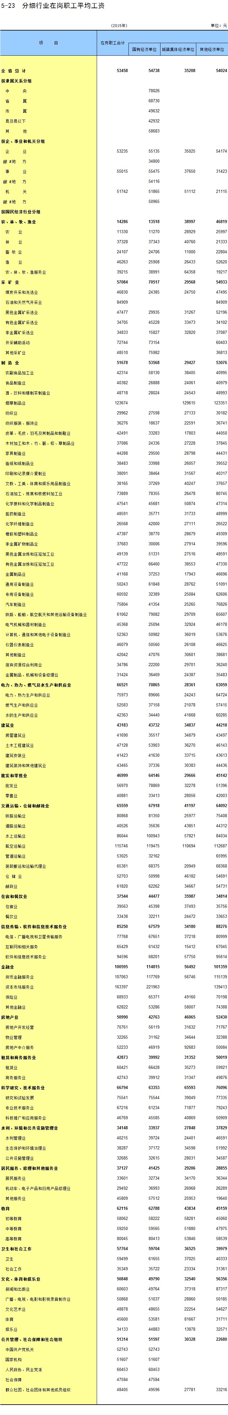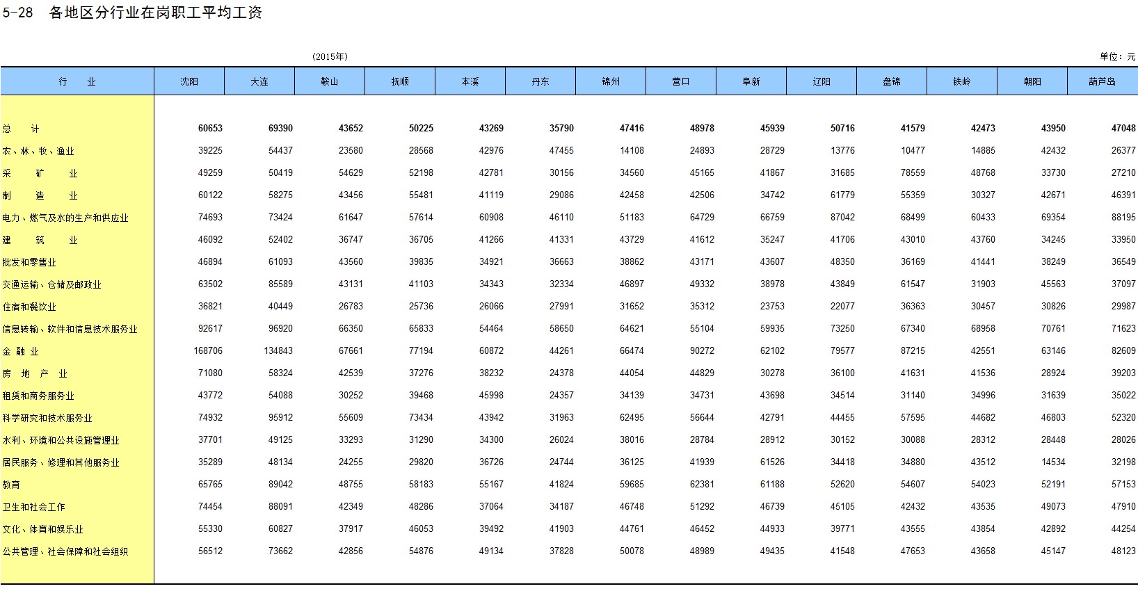 5-28 各地区分行业在岗职工平均工资