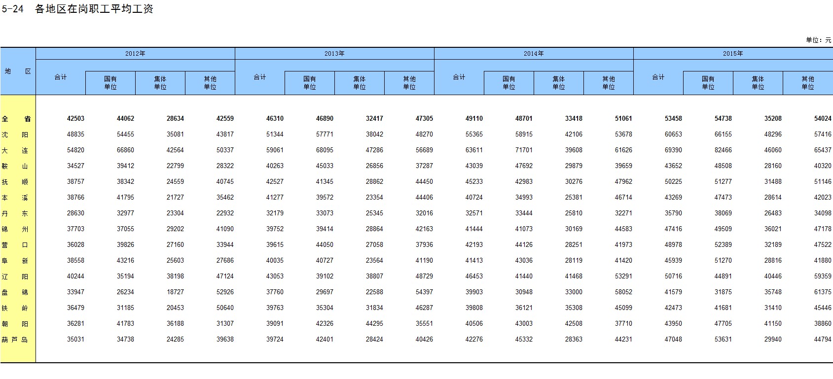 5-24 各地区在岗职工平均工资