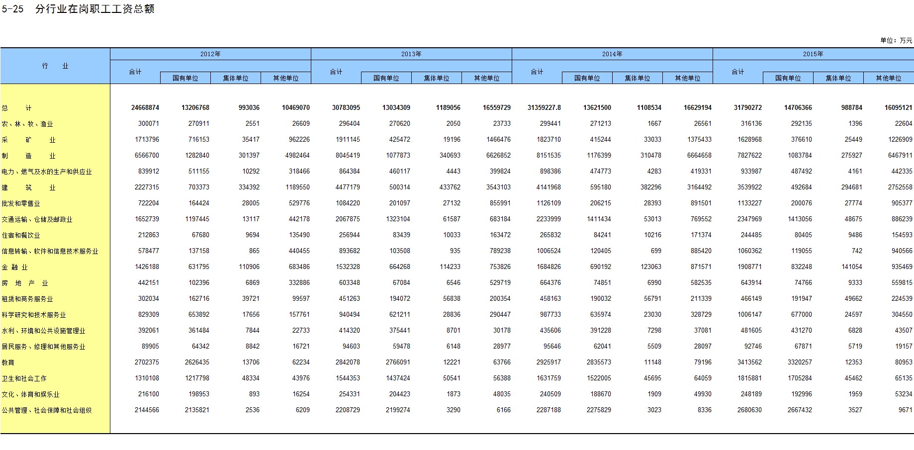 5-25 分行业在岗职工工资总额