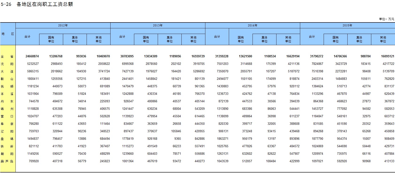5-26 各地区在岗职工工资总额