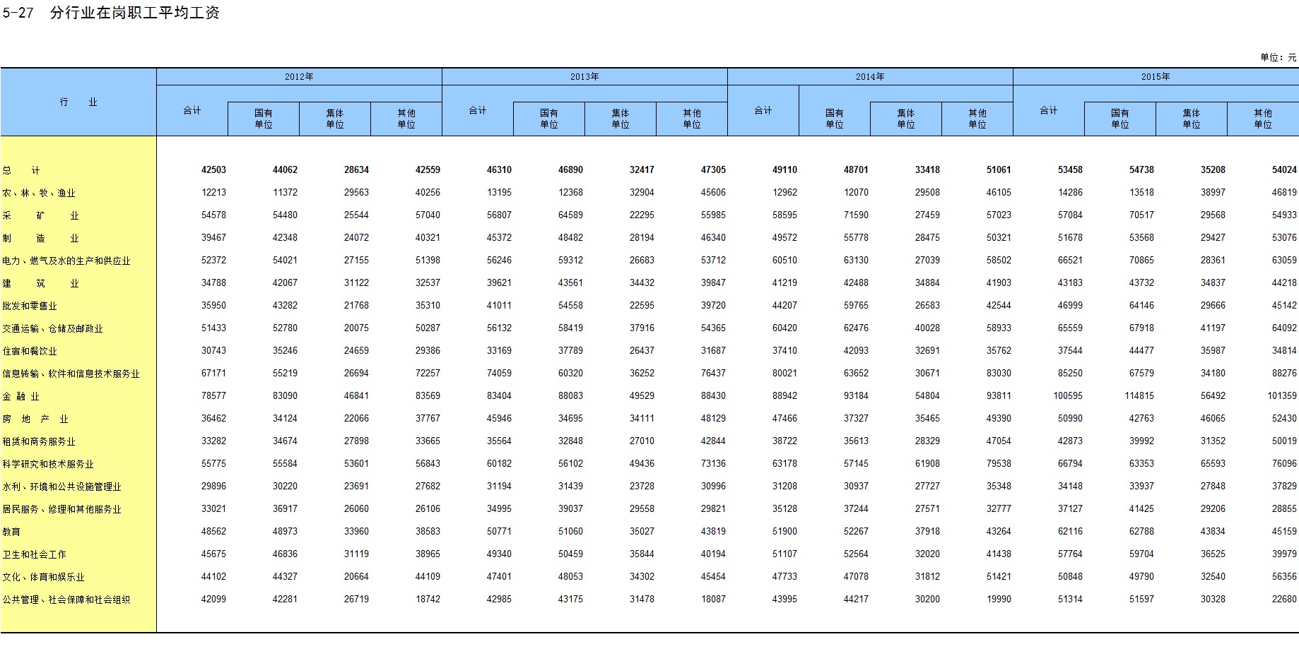 5-27 分行业在岗职工平均工资