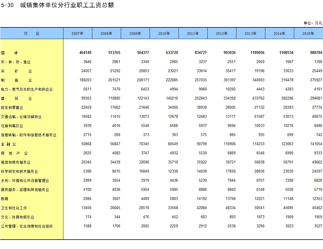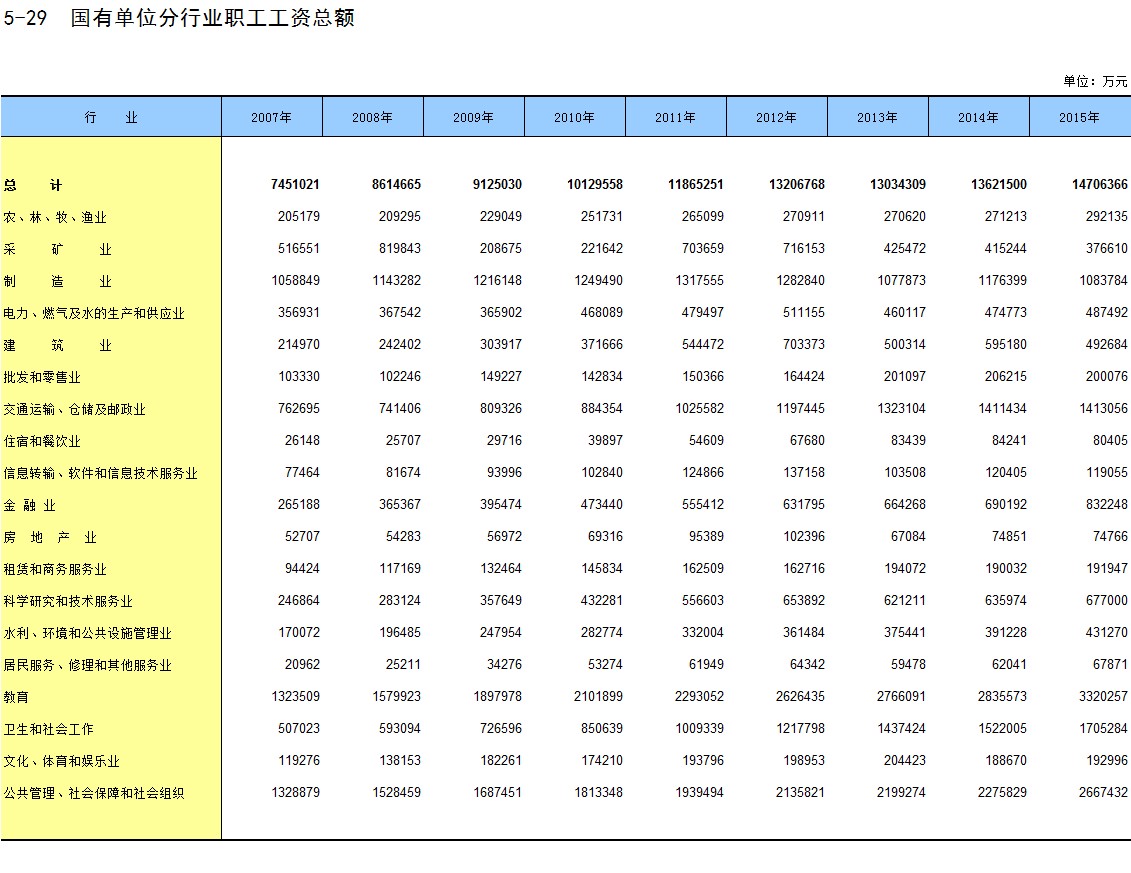 5-29 国有单位分行业职工工资总额