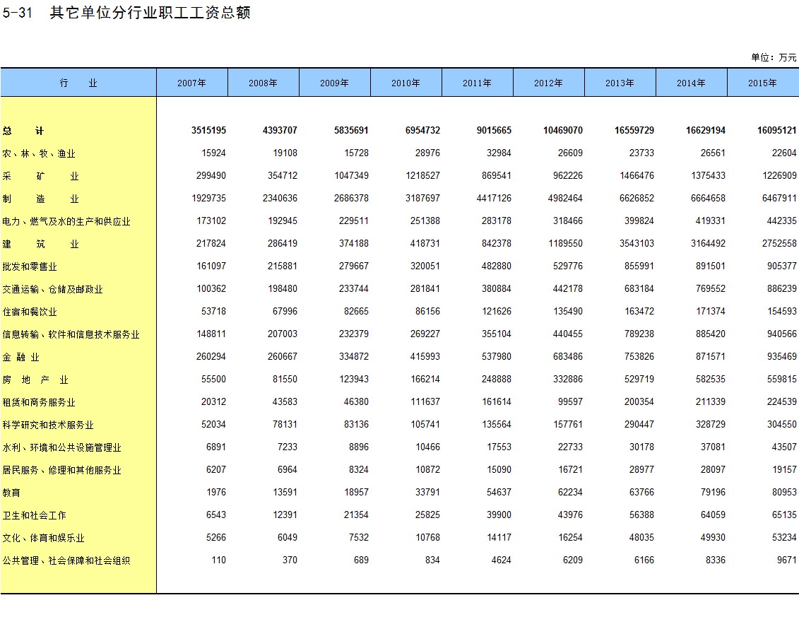 5-31 其它单位分行业职工工资总额