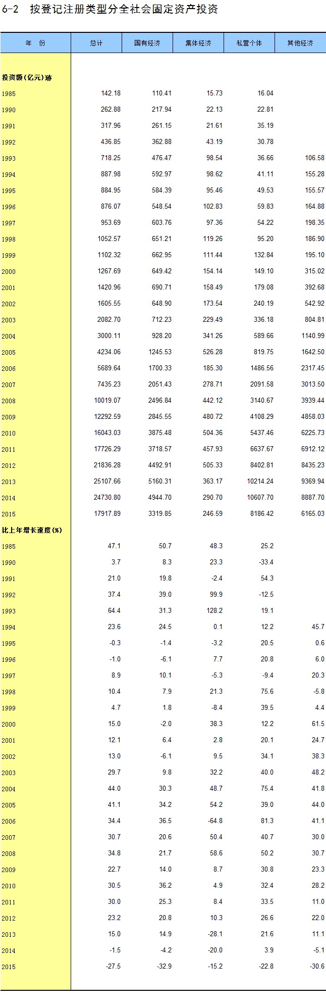 6-2 按登记注册类型分全社会固定资产投资