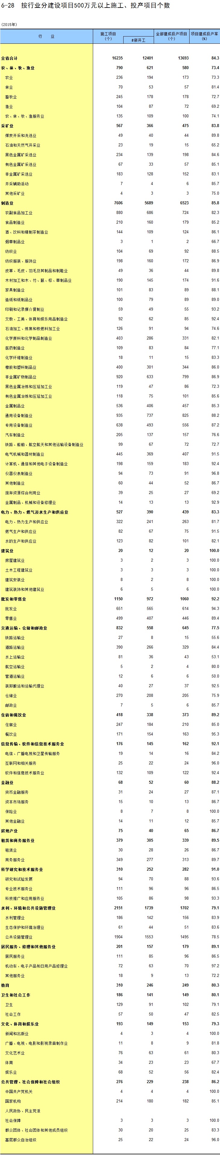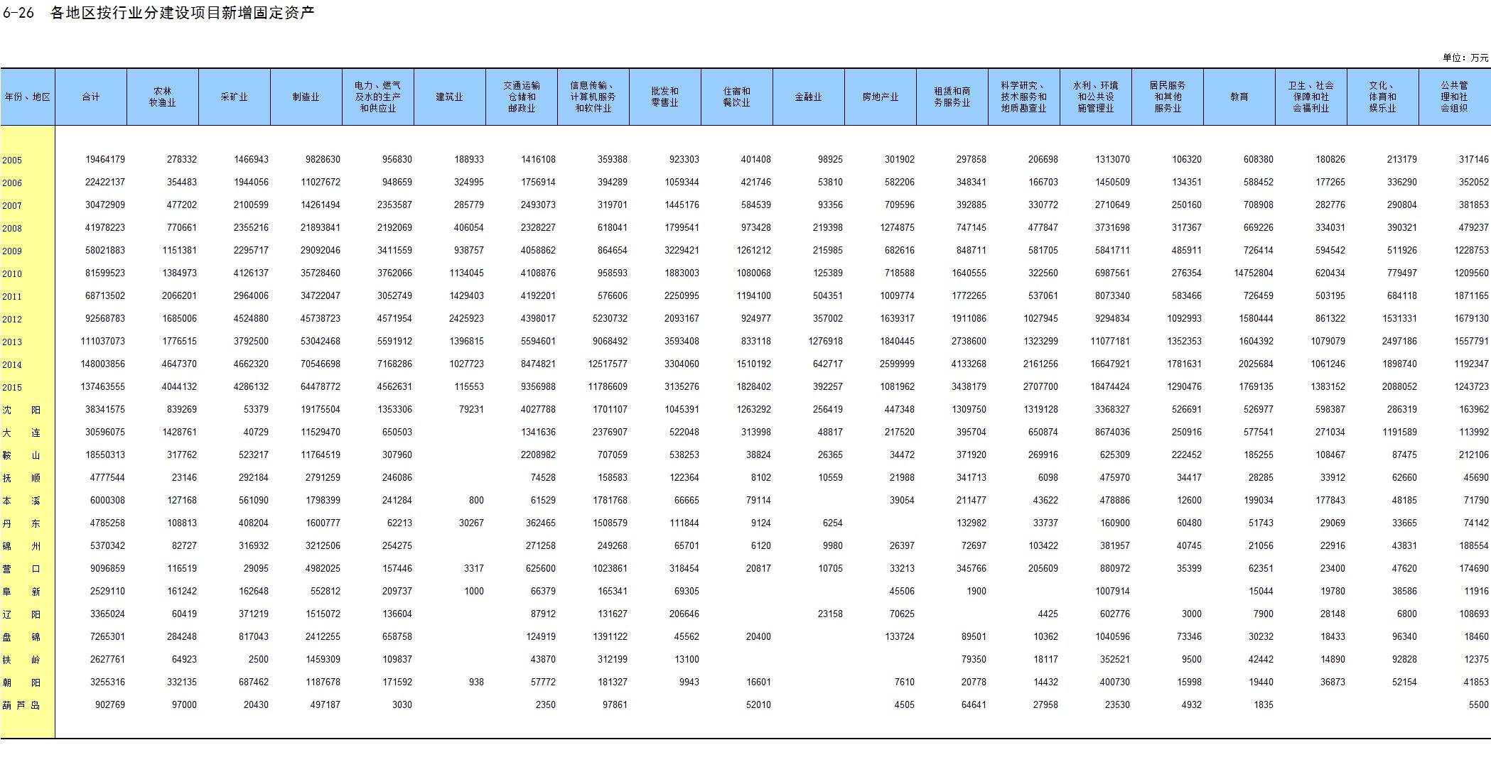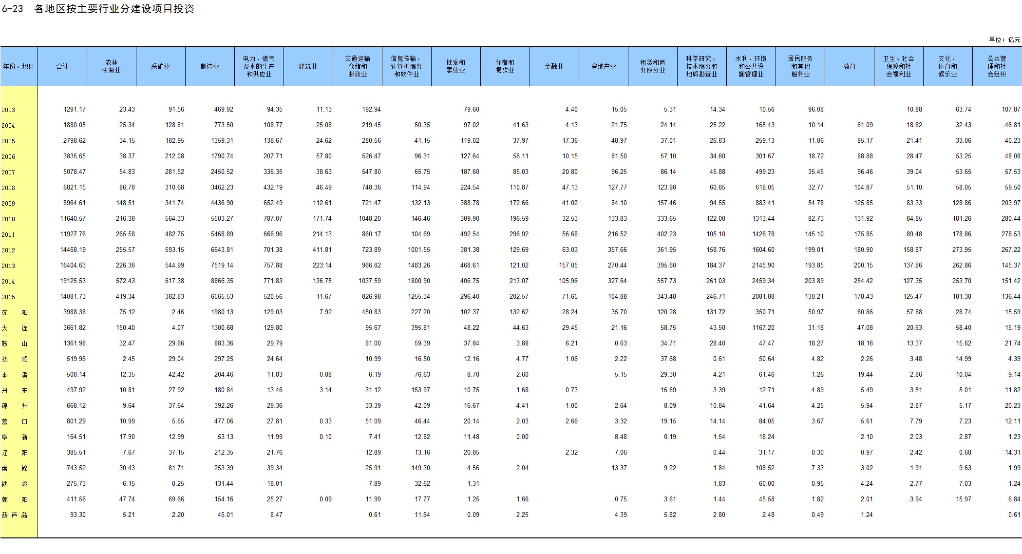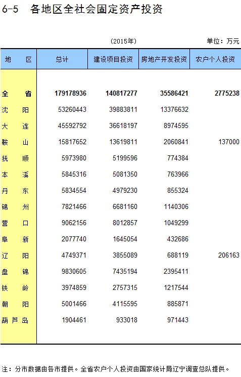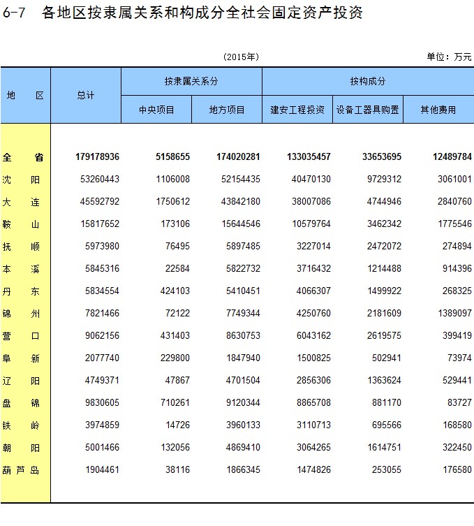 6-15 各地区按主要行业分固定资产投资