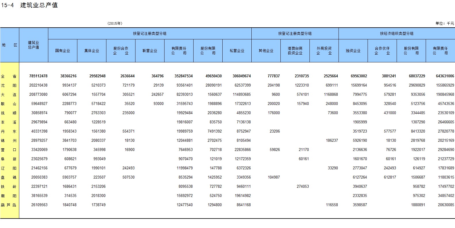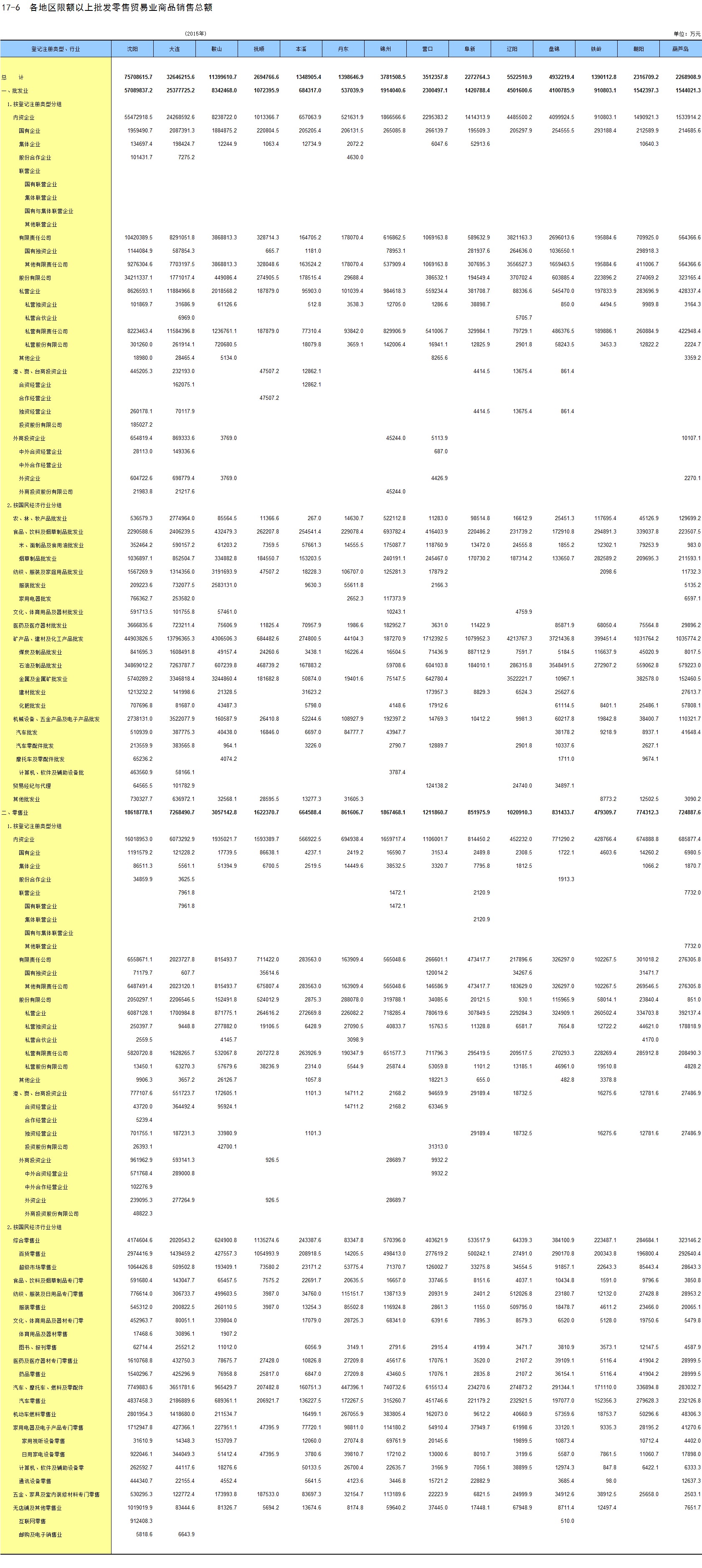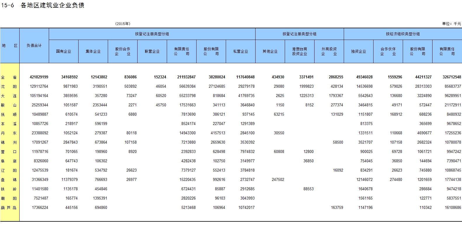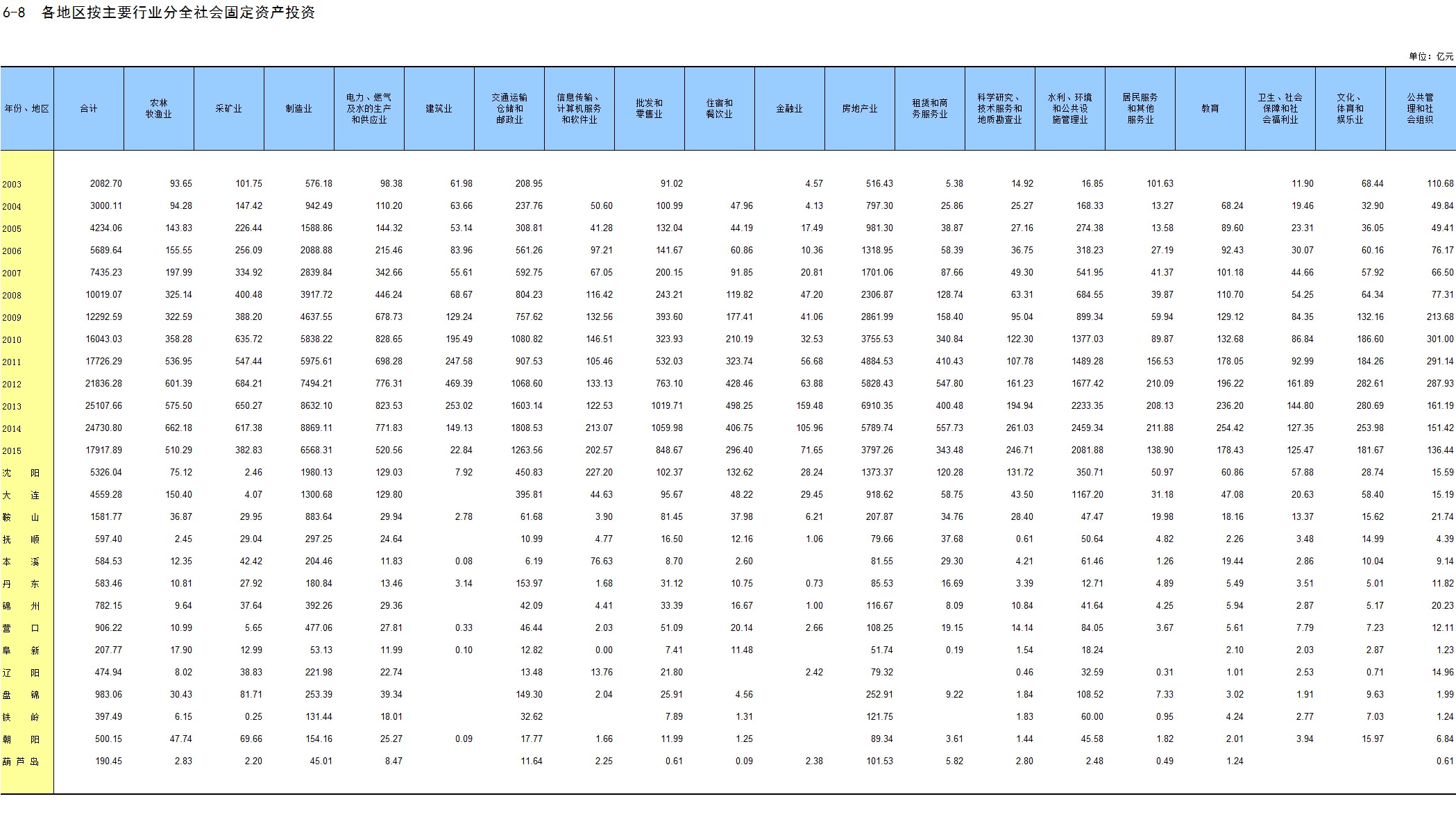 6-15 各地区按主要行业分固定资产投资