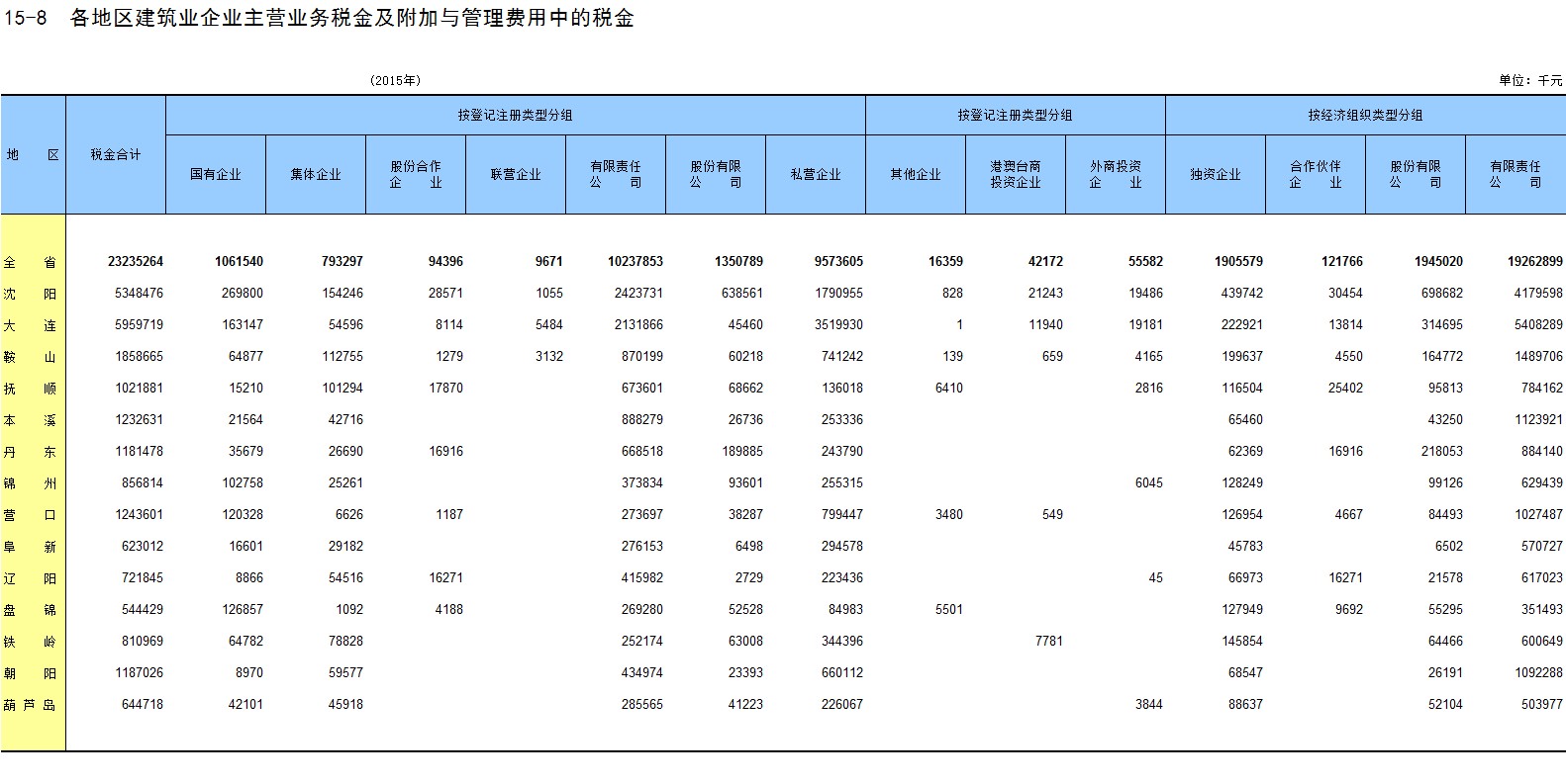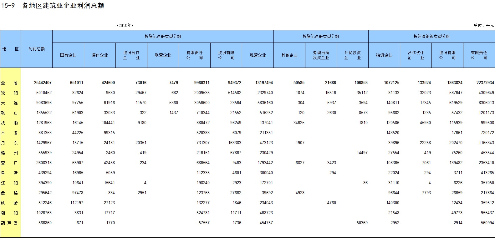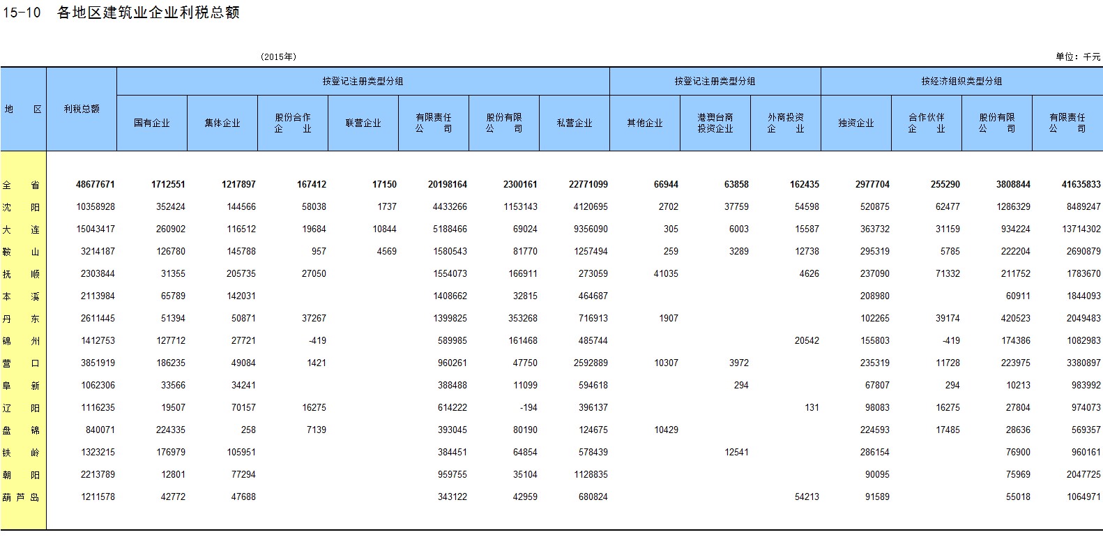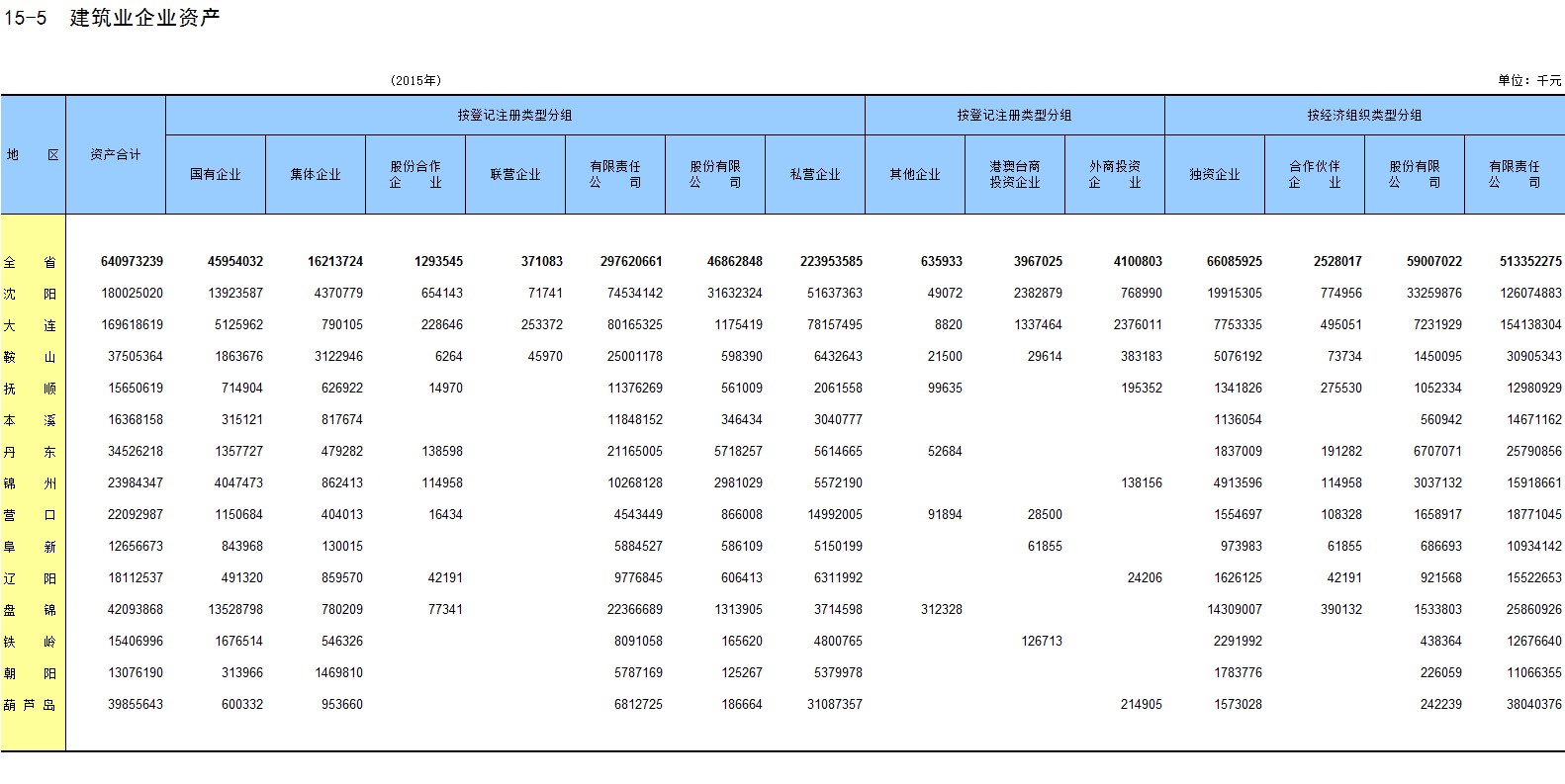 6-15 各地区按主要行业分固定资产投资
