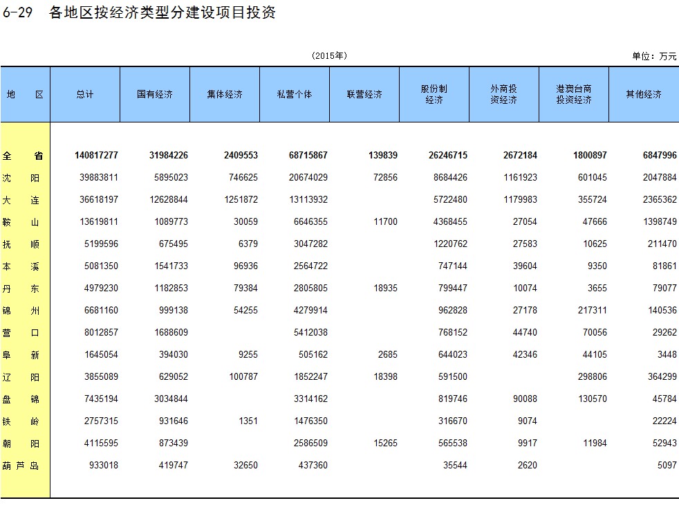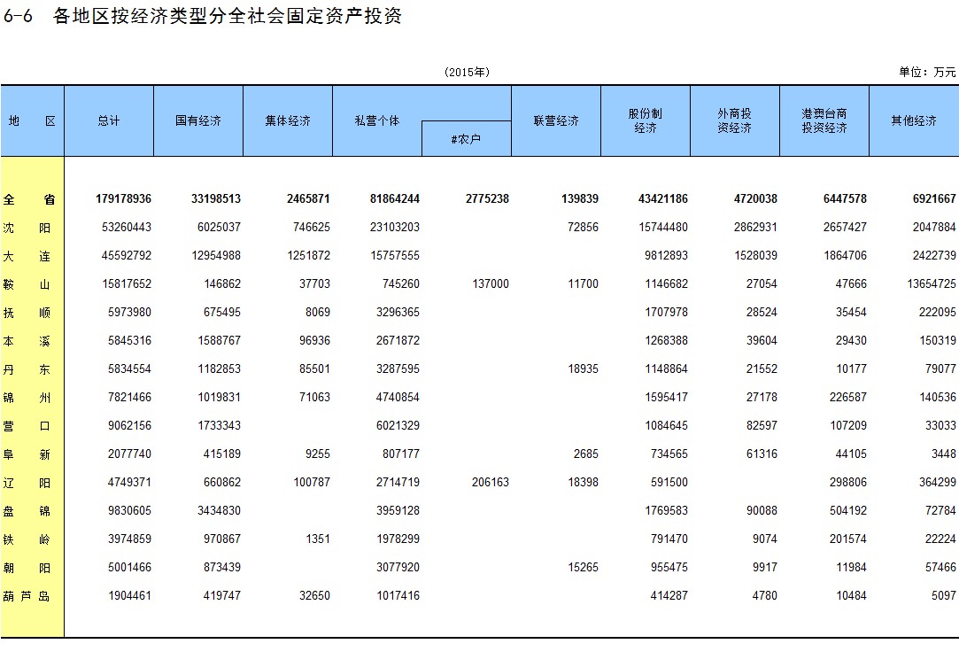 6-6 各地区按经济类型分全社会固定资产投资