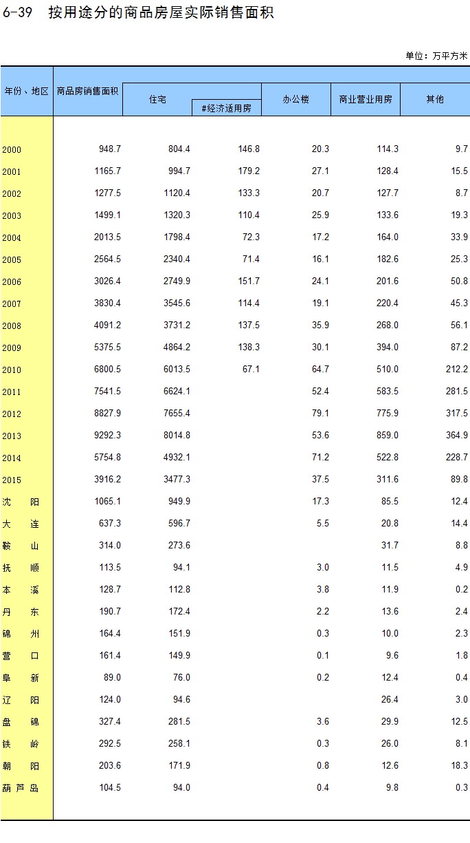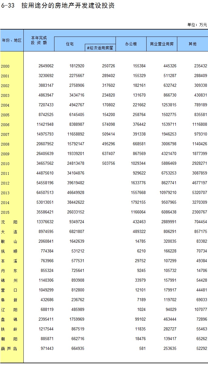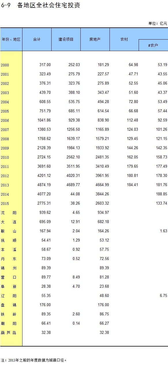 6-9 各地区全社会住宅投资