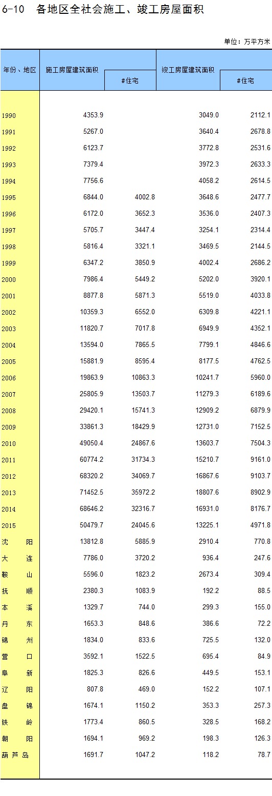 6-10 各地区全社会施工、竣工房屋面积