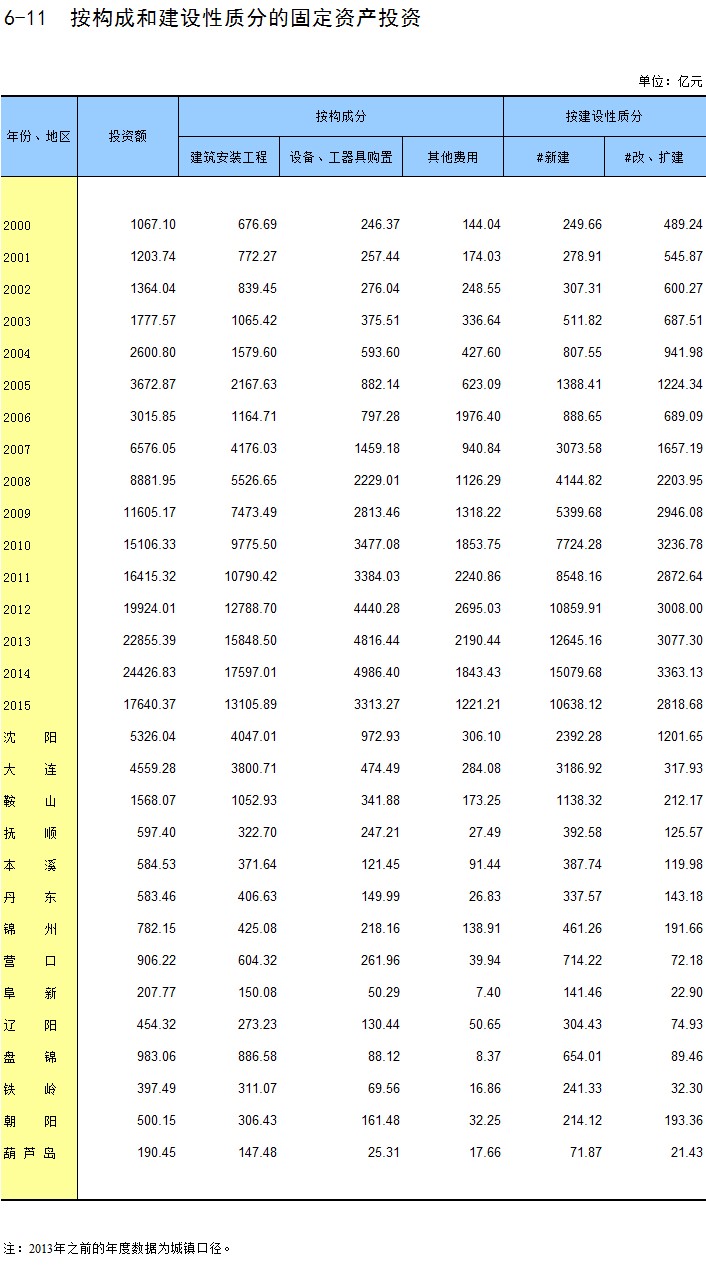 6-11 按构成和建设性质分的固定资产投资