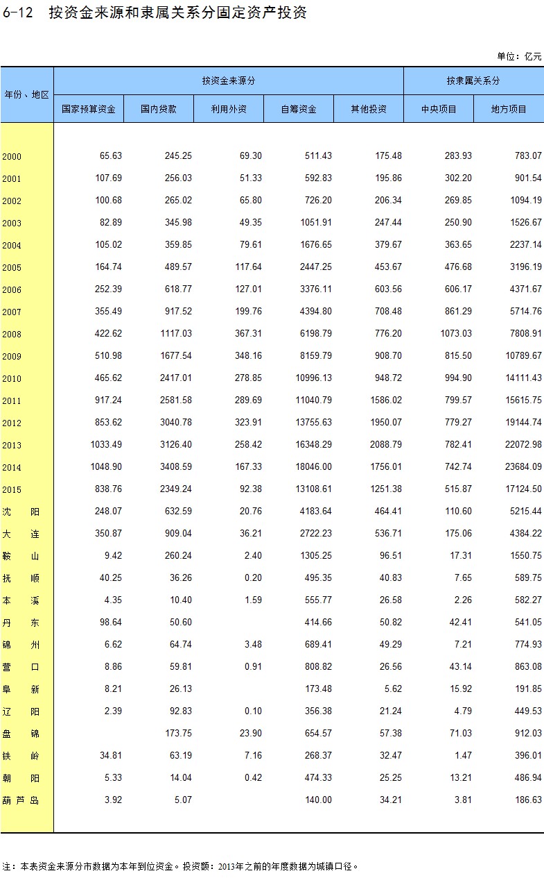 6-12 按资金来源和隶属关系分固定资产投资
