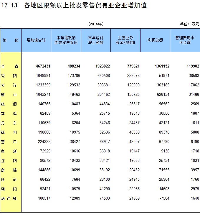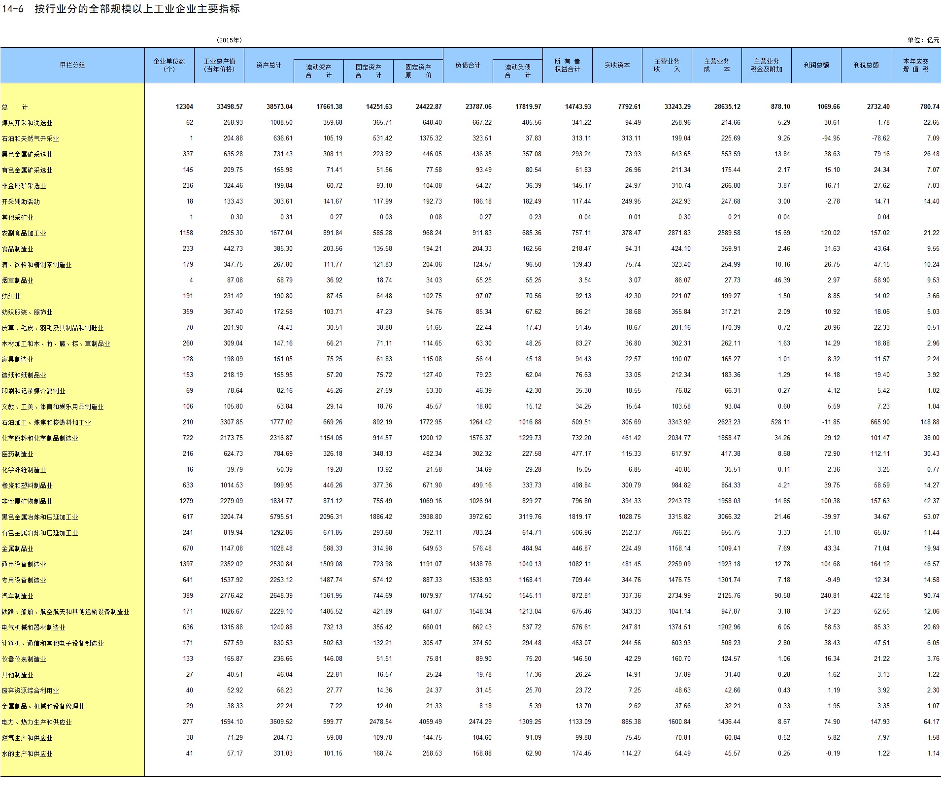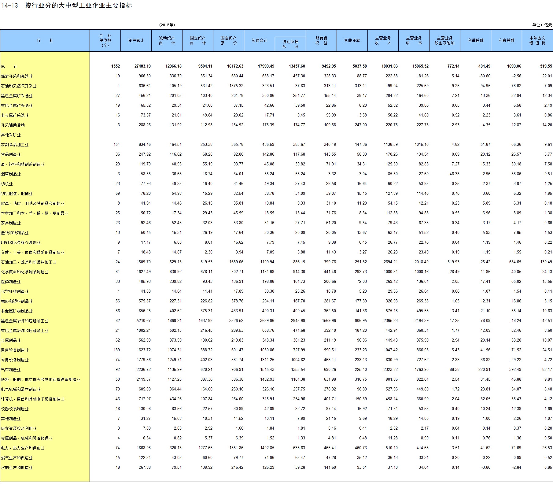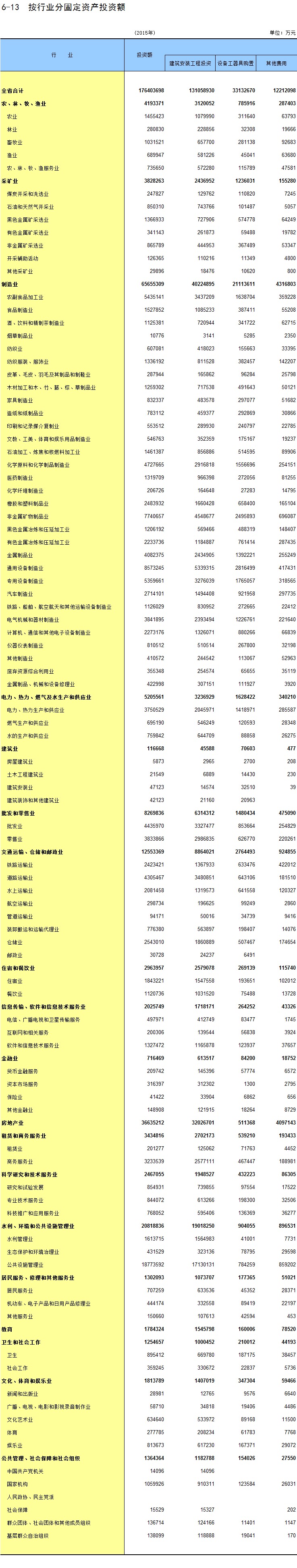 6-13 按行业分固定资产投资额
