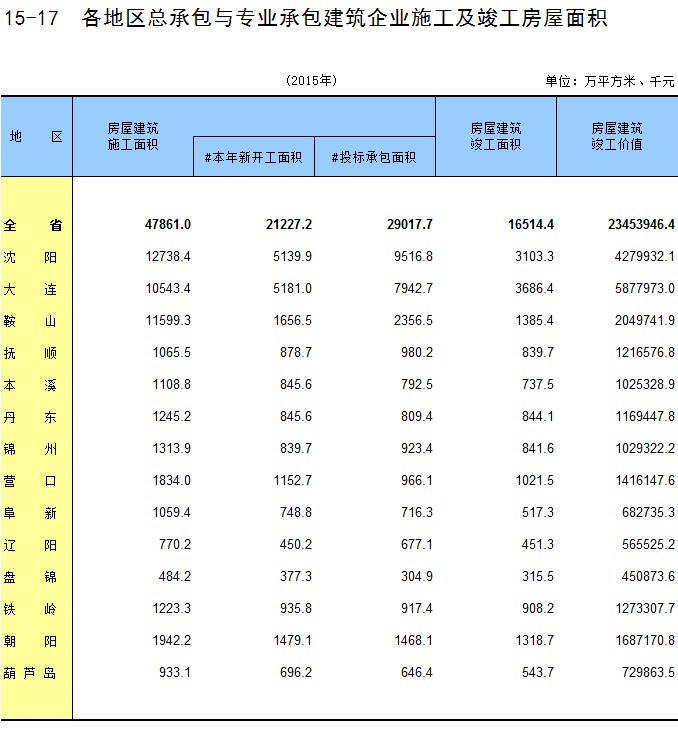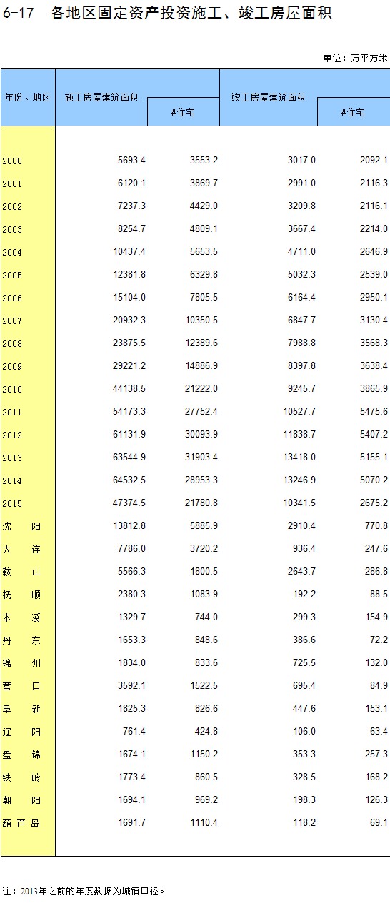 6-17 各地区固定资产投资施工、竣工房屋面积