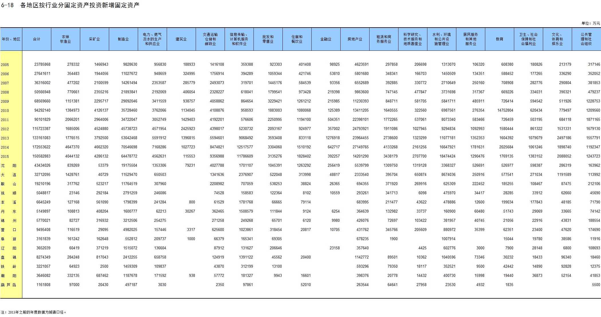 6-18 各地区按行业分固定资产投资新增固定资产