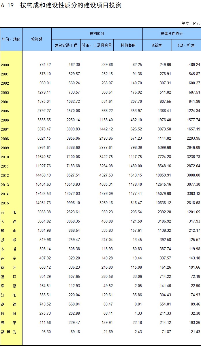 6-19 按构成和建设性质分的建设项目投资