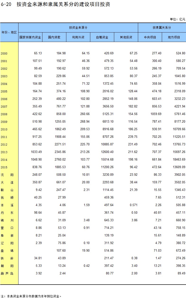 6-20 按资金来源和隶属关系分的建设项目投资