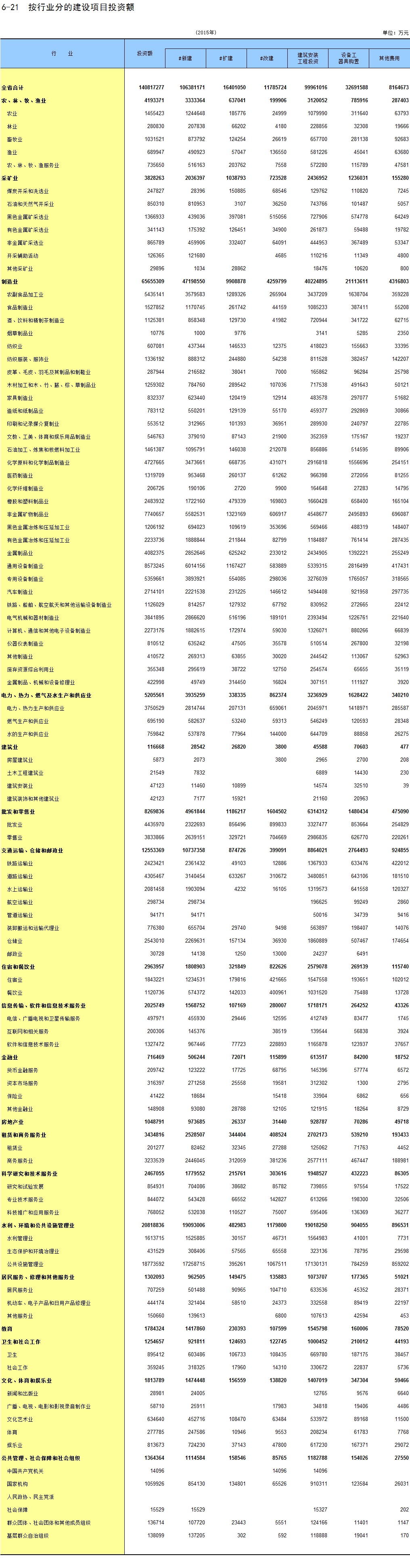 6-21 按行业分的建设项目投资额