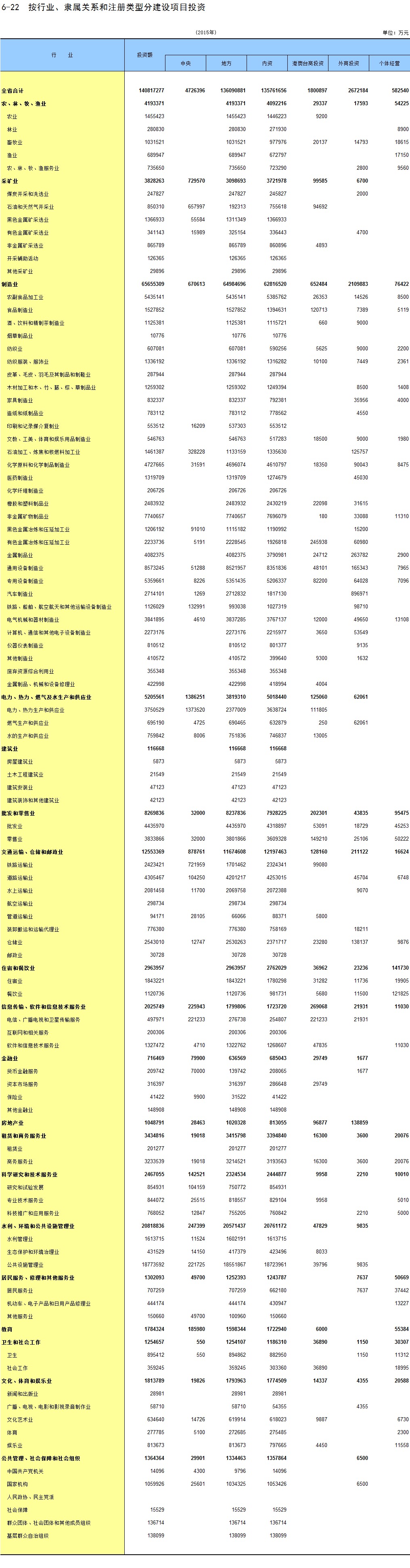 6-22 按行业、隶属关系和注册类型分建设项目投资