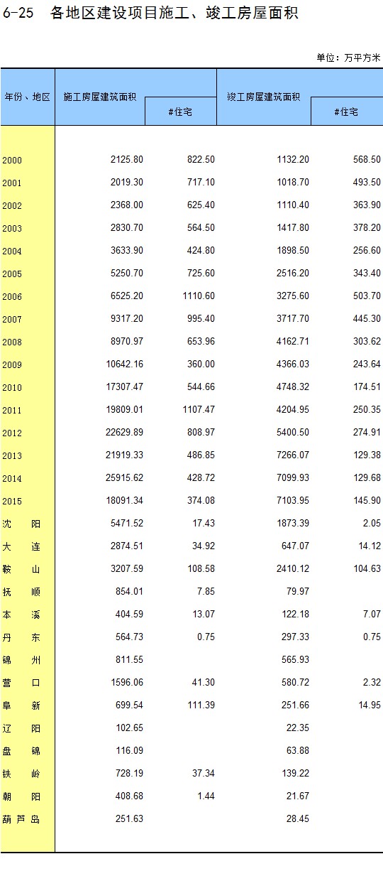 6-25 各地区建设项目施工、竣工房屋面积