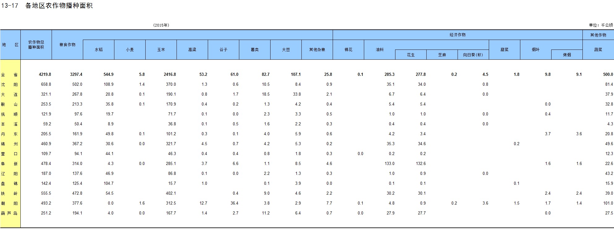 附录7 2015年各市农业县区基本情况