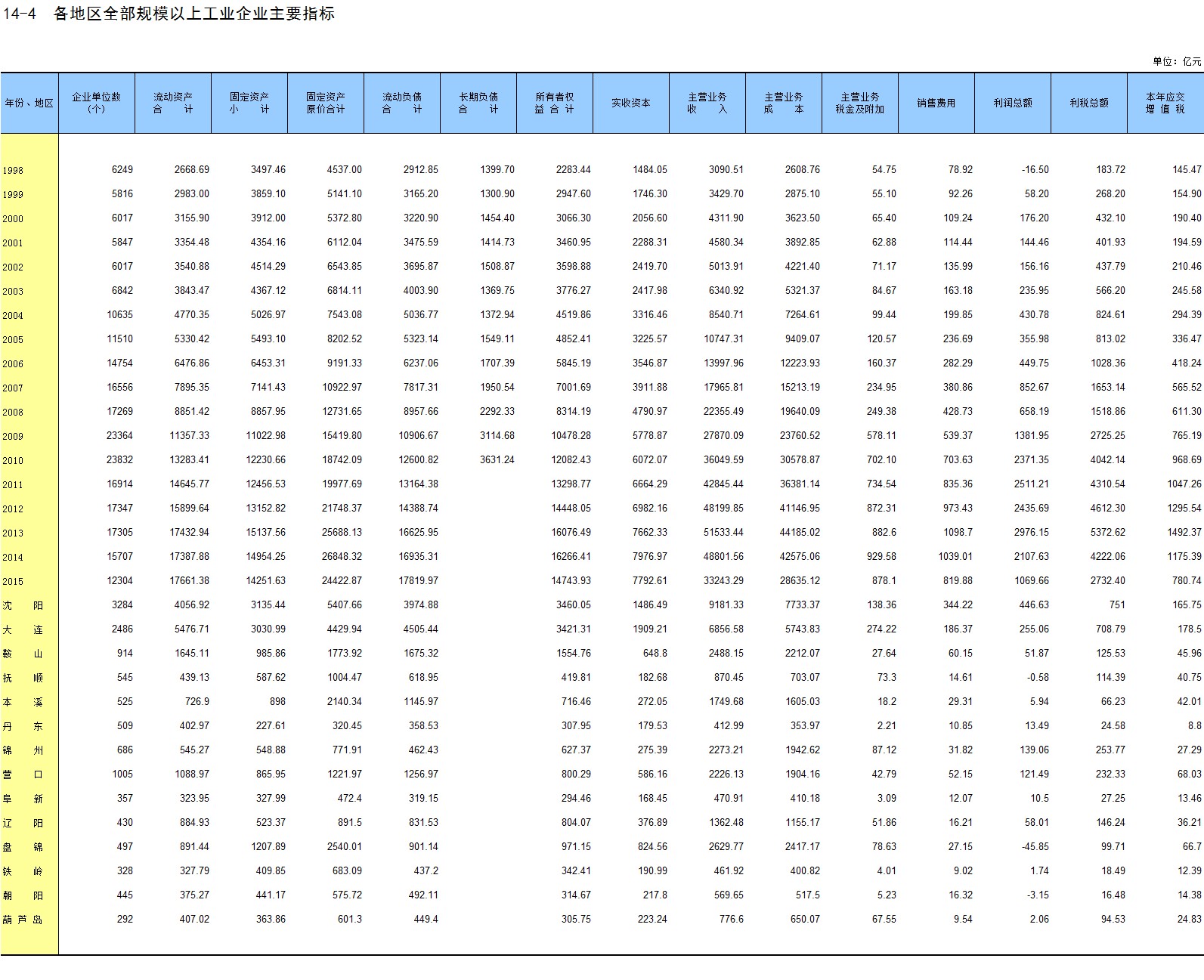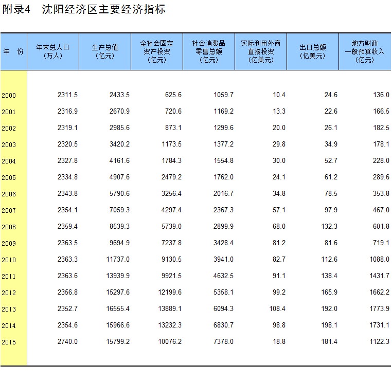 附录4 沈阳经济区主要经济指标